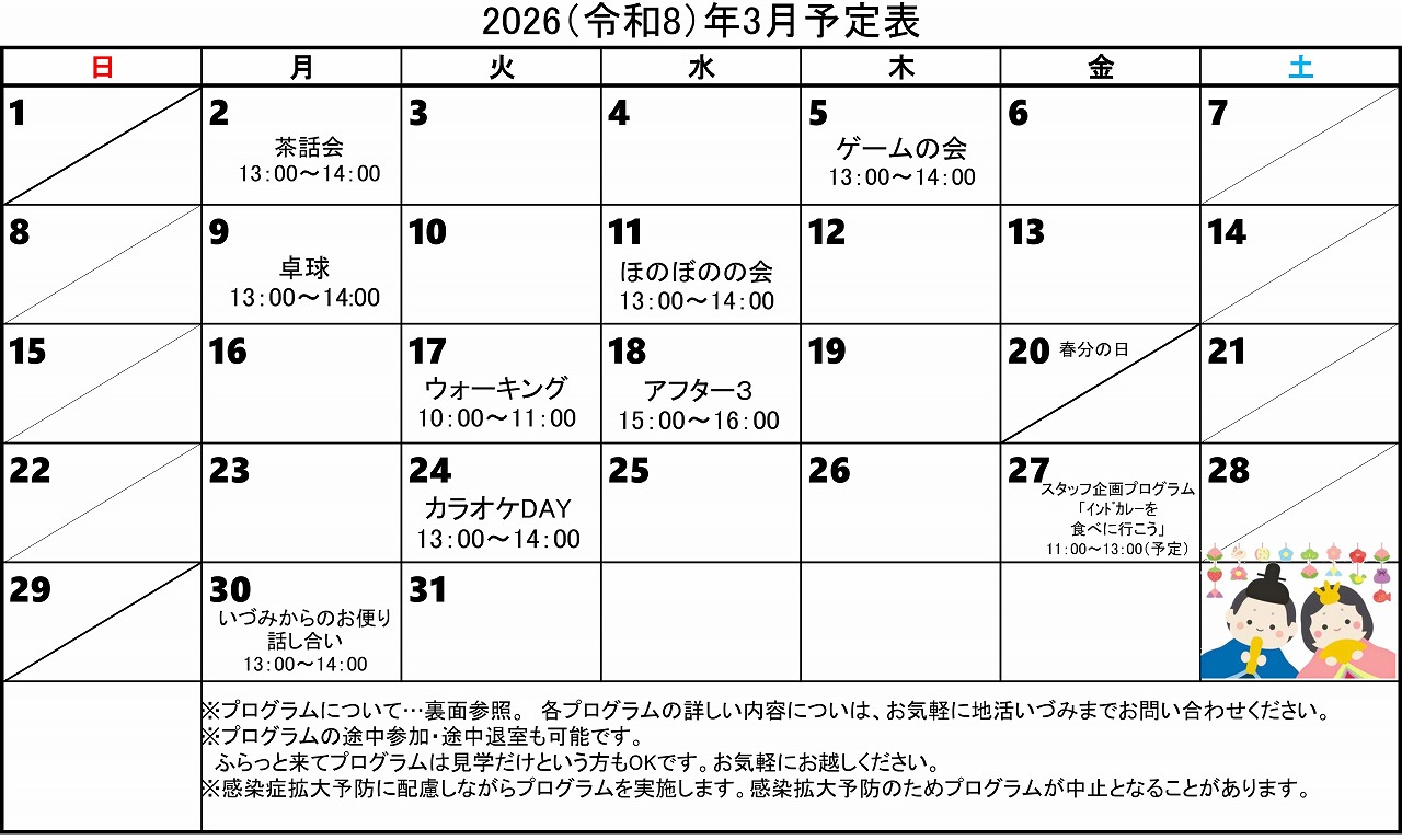 月間のスケジュールはこちらのホームページでご確認ください。(Instagramからもご確認いただけます。) - 相談支援
